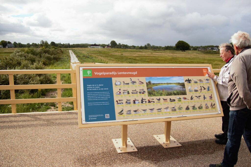 Lentevreugd is een geliefde plek van vogels. Vanaf de eerste jaren van de omvorming tot natuurgebied zijn er meer dan 100 vogelsoorten waargenomen, waaronder zeldzaamheden als de klapekster, kuifkoekoek, griel en hop. In 2025 kwamen er drommen vogelliefhebbers naar Lentevreugd om bijeneter, grauwe klauwier en roodkopklauwier te spotten. In de winter worden regelmatig baardmannetjes gehoord en gezien en de eerste waarneming van een blauwborst in het voorjaar is altijd weer een mooi moment. Ook de veldleeuwerik laat zich regelmatig zien en horen. In Nederland is het aantal veldleeuweriken de laatste decennia dramatisch afgenomen, ook in Lentevreugd. Tot broeden komen ze helaas niet meer. Dat komt voor een deel doordat er een dikke vilt-laag van overjarig duinriet was ontstaan op de plek waar ze voorheen broedden. Veldleeuweriken hebben een gevarieerde, lage en kruidenrijke vegetatie nodig, want daarin zitten insecten waarmee een paartje hun jongen voert.